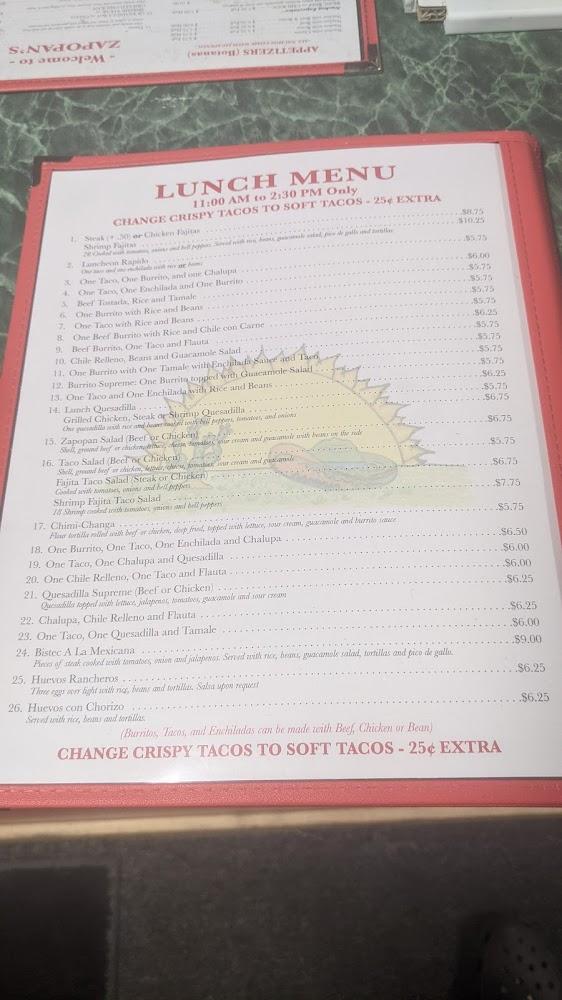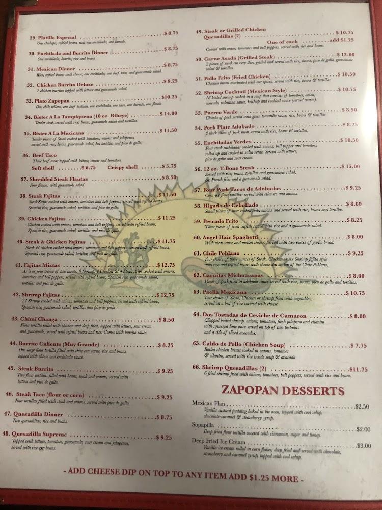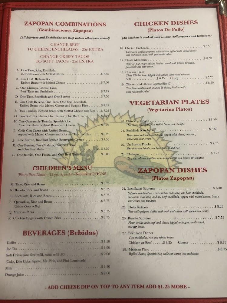 Zapopan's menu is diverse and designed to cater to various tastes. From classic Tacos and Enchiladas to Chile Rellenos and Shrimp dishes, the options are plentiful. Small plates are perfect for sharing, and the robust margaritas are a must-try. Specialties highlight local flavors, ensuring a true taste of Mexico. Guests can enjoy happy hour deals on both food and drinks, making it a great choice for any occasion.